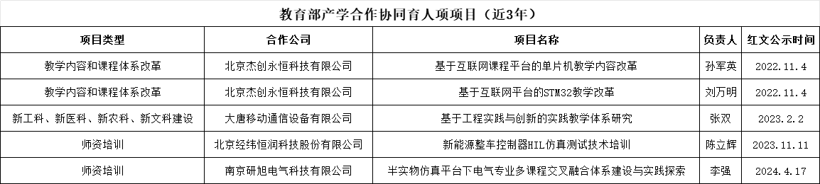 教育部产学合作协同育人项项目(近3年)